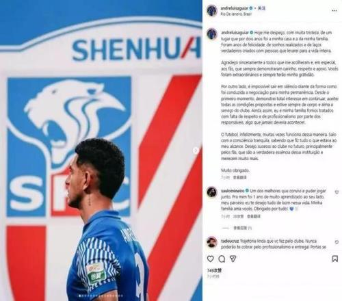 昨日接连官宣多名球员离队并官宣新赛季首个引援的上海申花则遭遇了麻烦。昨天被官宣合同到期不续约的外援路易斯,在个人社交账号上发声,直接炮轰申花管理层。路易斯表示,他从续约谈判一开始便表达了留队的意愿,并接受所有申花提出的条件,但他和家人却遭到相关负责人的不尊重和非专业对待。